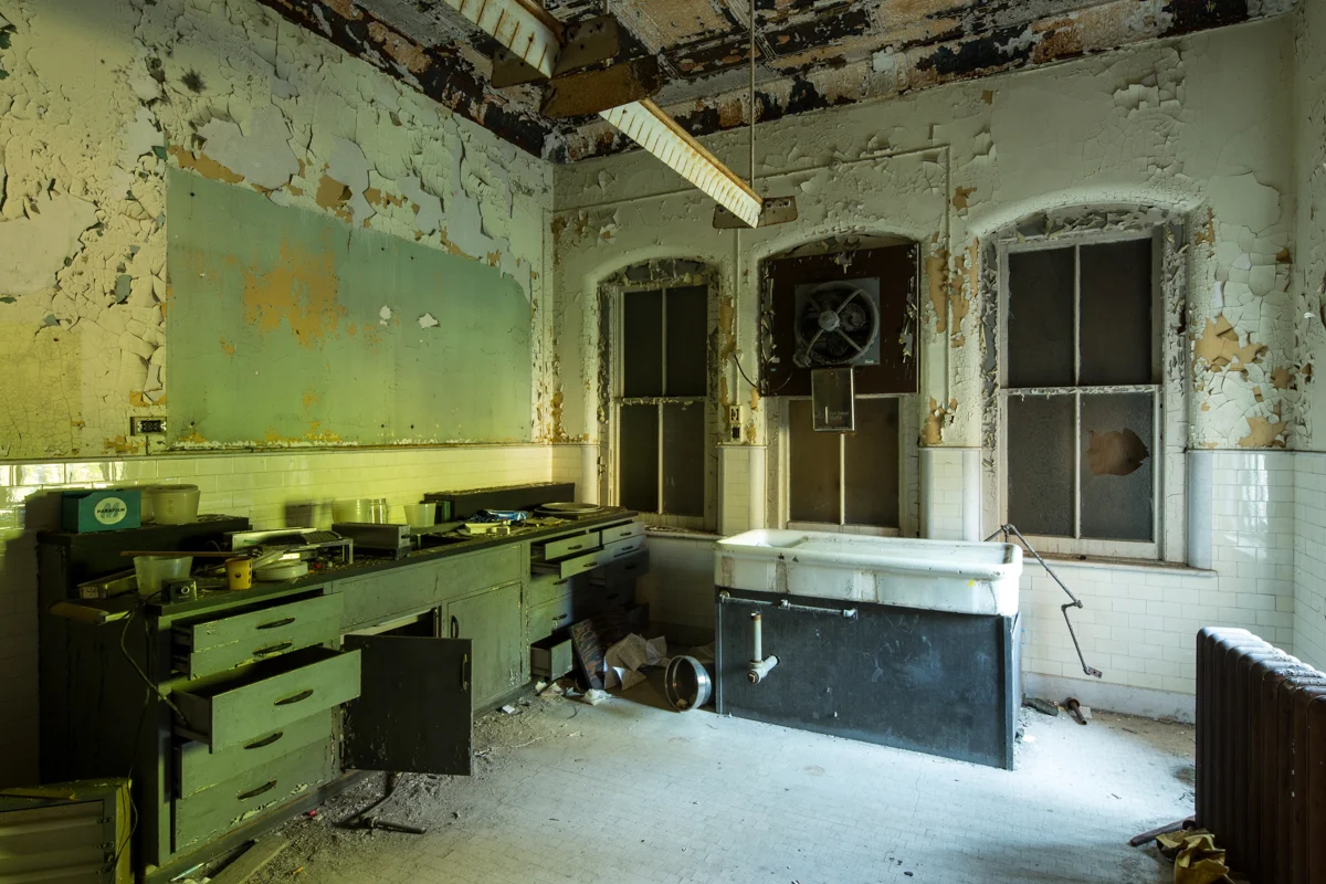 Inside the collapsed male wings of the former Hudson River Psychiatric Facility in New York.